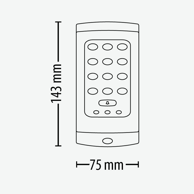Installation – The compact keypad has two wires which connect to the lock and two wires which connect to the power supply. There are two wires for connection to an exit button if required. The cable exits centrally from the back of the keypad making drilling and mounting very accurate. All settings and codes are programmed via the keypad using the master code. The K series keypads have 2 wires which can connect to a sounder to act as a doorbell when the ‘bell’ key is pressed.