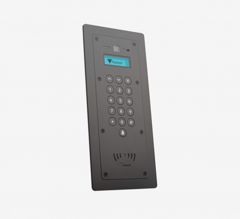 About – Entry is a door entry system that works standalone or alongside Paxton’s Net2 access control or Paxton10, access control and video management, combining door entry with key features of our access control software. The Entry standard panel is a robust external panel for use with our video door entry system. This panel comes in industry recognised anthracite grey (RAL7016), meaning it complements the windows and doors of many new builds and modern apartments.