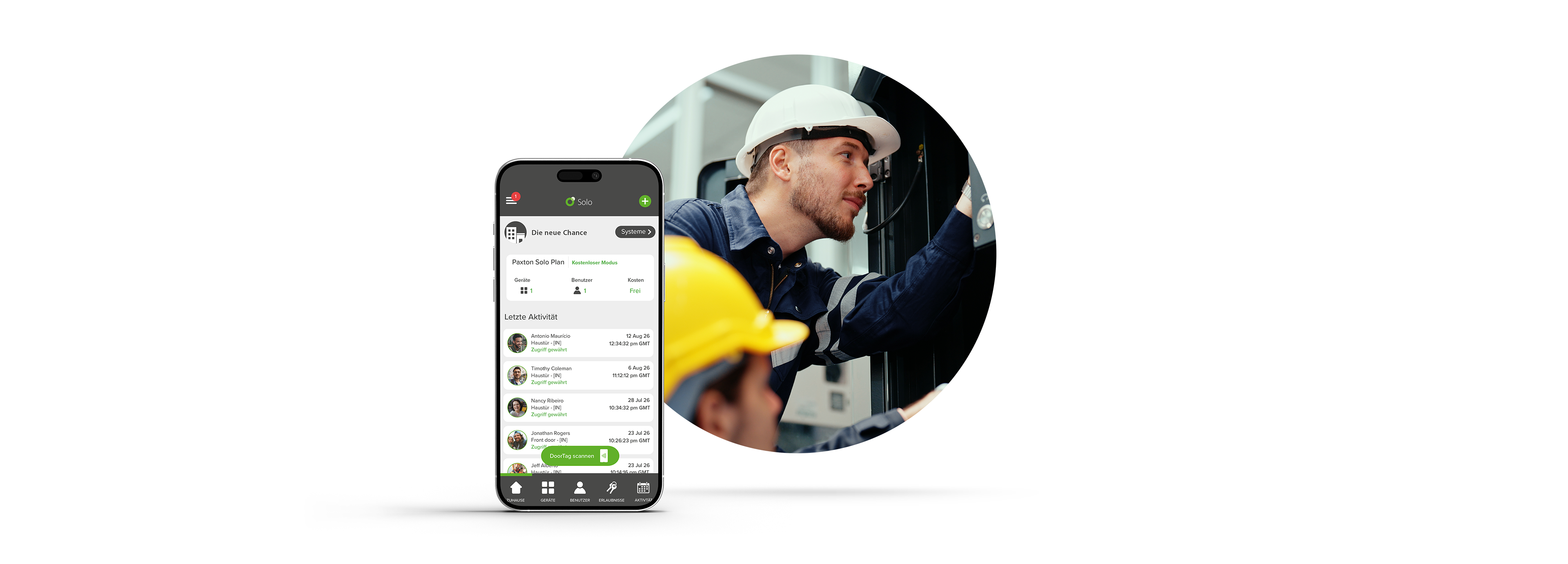 Solo bietet eine einfache, kostengünstige Option, mit der Sie Ihren Standort ohne vorhandene Netzwerkinfrastruktur sichern können. Durch die Nutzung mobiler Daten für die Konnektivität und der Paxton Solo-App zur Inbetriebnahme und Verwaltung des Systems können Sie Ihre Baustelle schnell und effektiv sichern.