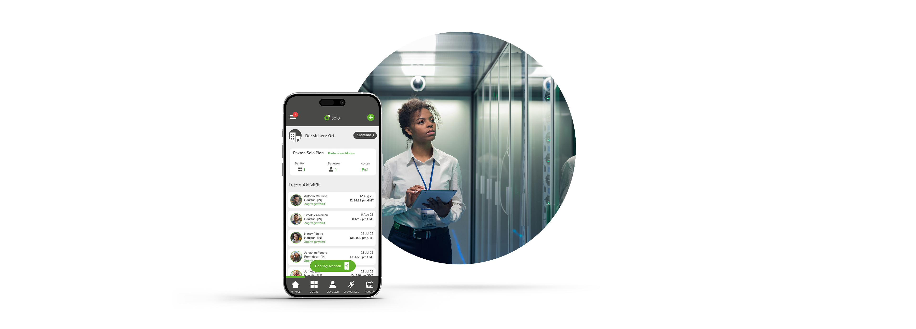 Solo ist ein sofort einsatzbereites System, das die neueste, in Smartphones integrierte Sicherheitstechnik nutzt. Solange Ihr Smartphone gesperrt ist, kann niemand Ihre Identifikationsdaten verwenden, um Zutritt zu einem durch Solo gesicherten Standort zu erhalten.
