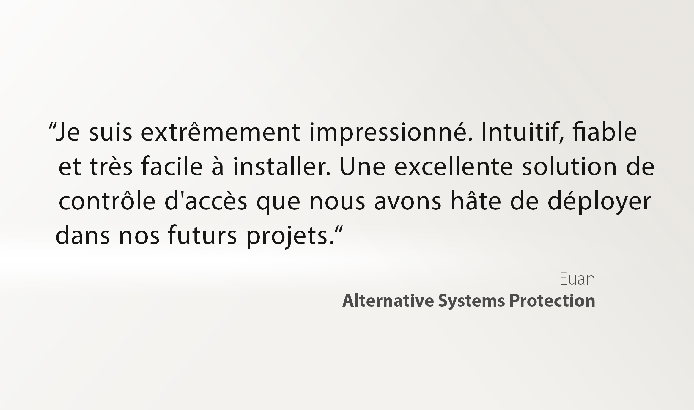 “Le produit Solo est une architecture différente des systèmes de contrôle d’accès traditionnels. Grâce à cette approche de communication entre le contrôleur et le cloud, la logique de contrôle d’accès peut utiliser un cryptage plus moderne que celui proposé par la technologie traditionnelle des badges d’accès. »” – Pentest Partners