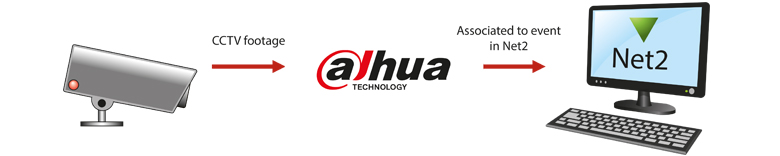 Integreer een Dahua DVR of NVR en associeer een camera met een deur in de Net2 software. Deze manier van integratie stelt gebruikers in staat om bij een toegangscontrole gebeurtenis, dat kan zijn toegang verleend of toegang geweigerd, de camerabeelden van de gebeurtenis direct terug te kijken. Achter elke toegangscontrole gebeurtenis in de Net2 software staat een camera icoontje waar men op kan klikken, waarna de Dahua viewer automatisch zal worden geopend met het bijbehorende beeld.