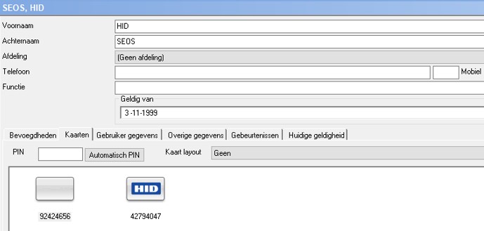 De gebruiker heeft nu twee kaartnummers, een HID SEOS kaartnummer en een uniek serienummer. Het secure SEOS kaartnummer wordt gebruikt door de HID Signo lezers. Terwijl het serienummer door de PaxLock Pro deurbeslagen, Net2 multiformat lezers en de Entry Intercom buitenposten gelezen wordt.