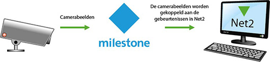 Milestone is een video management systeem dat naadloos integreert met de Net2 software, waardoor het mogelijk is om makkelijk en eenvoudig opgenomen video beelden van een gebeurtenis terug te kijken via Net2. Groot voordeel van Milestone Systems is dat het een open platform is, waardoor integratie met een zeer groot aantal verschillende camera merken tot de mogelijkheden behoort. Maar ook is er zeer brede integratie op het gebied van verschillende oplossingen, zoals bijvoorbeeld, toegangscontrole en video analytics. Het doel van Milestone is om organisatorische processen en algehele veiligheid van het beheer en distributie van digitale videogegevens van hun klanten te verbeteren. Milestone XProtect ® Video Management Software is krachtig, betrouwbaar, eenvoudig te gebruiken en bewezen in meer dan 100.000 installaties wereldwijd.