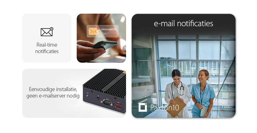 Uniek aan deze functie is dat er geen aparte e-mailserver nodig is. Paxton10 regelt dit volledig via de cloud, waardoor de configuratie snel en eenvoudig is