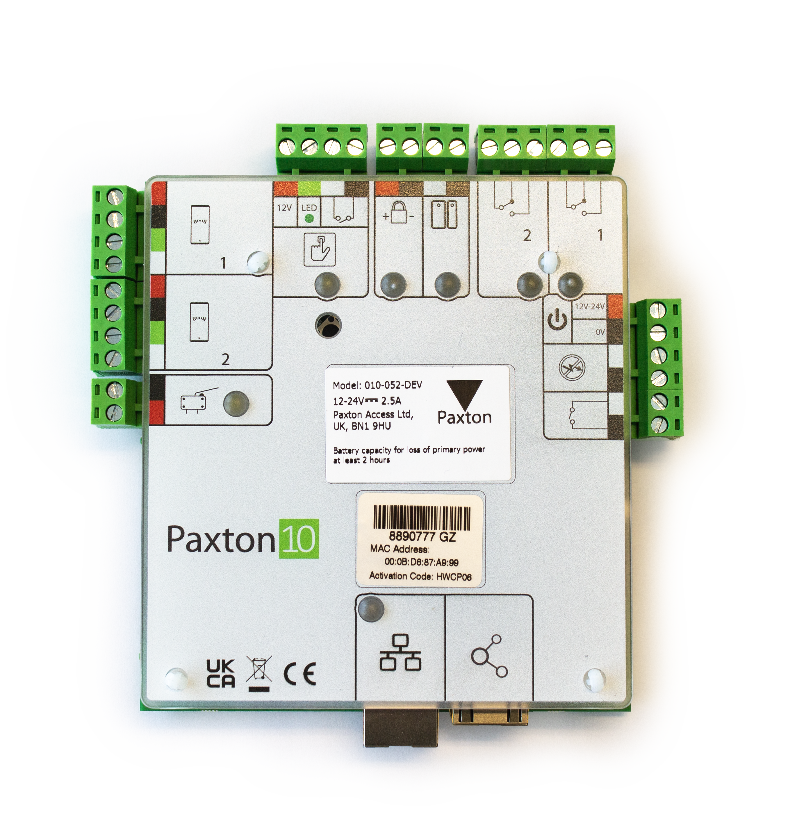 Ook zijn de montagegaten identiek aan die van een Net2 Plus deurcontroller waardoor bij migratieprojecten eenvoudig een Net2 Plus Deurcontroller vervangen kan worden voor een Paxton10 deurcontroller.