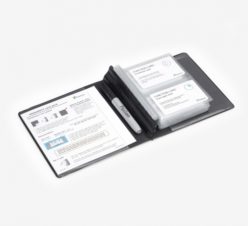 Informatie  Standalone kaart pakketten worden gebruikt bij Compact, Switch2, PaxLock Pro en Entry systemen. Een intuïtief schaduwkaart systeem wordt gebruikt voor een groter beheerdersgemak. Met de schaduwkaarten kunt u via één handeling de gebruikers kaarten blokkeren. De kaarten en schaduwkaarten worden geleverd in een handige map.