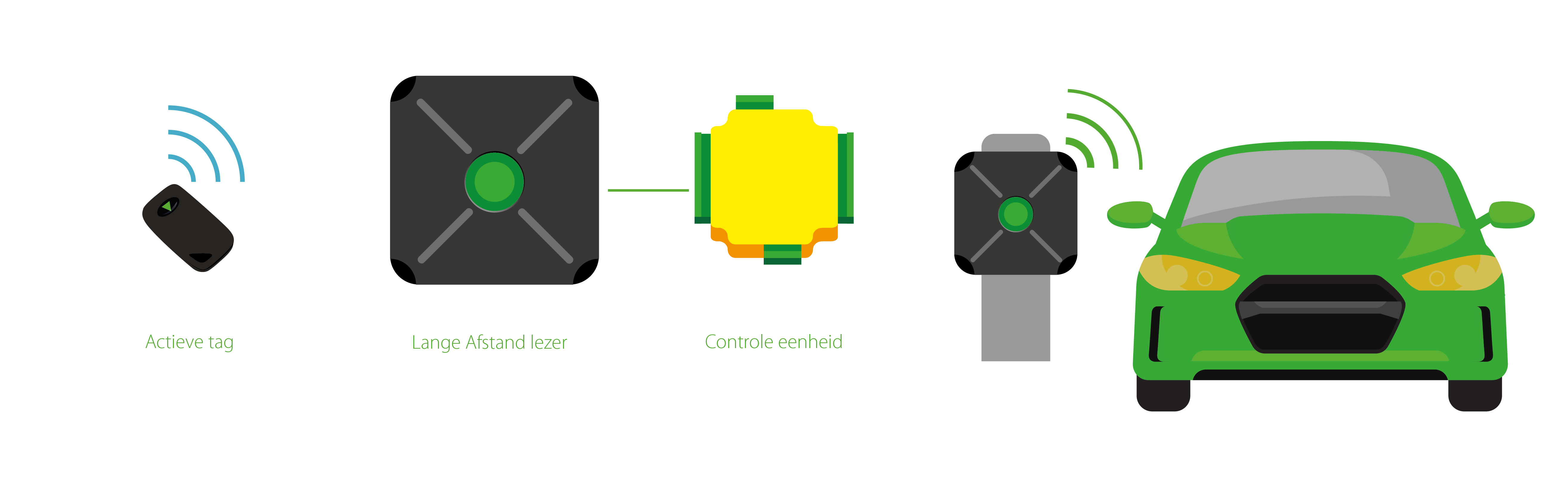 De lange afstand lezer is speciaal ontworpen voor de toegang tot (parkeer) terreinen. Met de lange afstand lezer kan een actieve handsfree kaart of tag (welke in het voertuig aanwezig is of bij de gebruiker gedragen wordt) gelezen worden vanaf maximaal 5 meter afstand. Doordat de handsfree interface print al in de lange afstand lezer is ingebouwd hoeft deze niet nog eens los bijgeplaatst te worden.