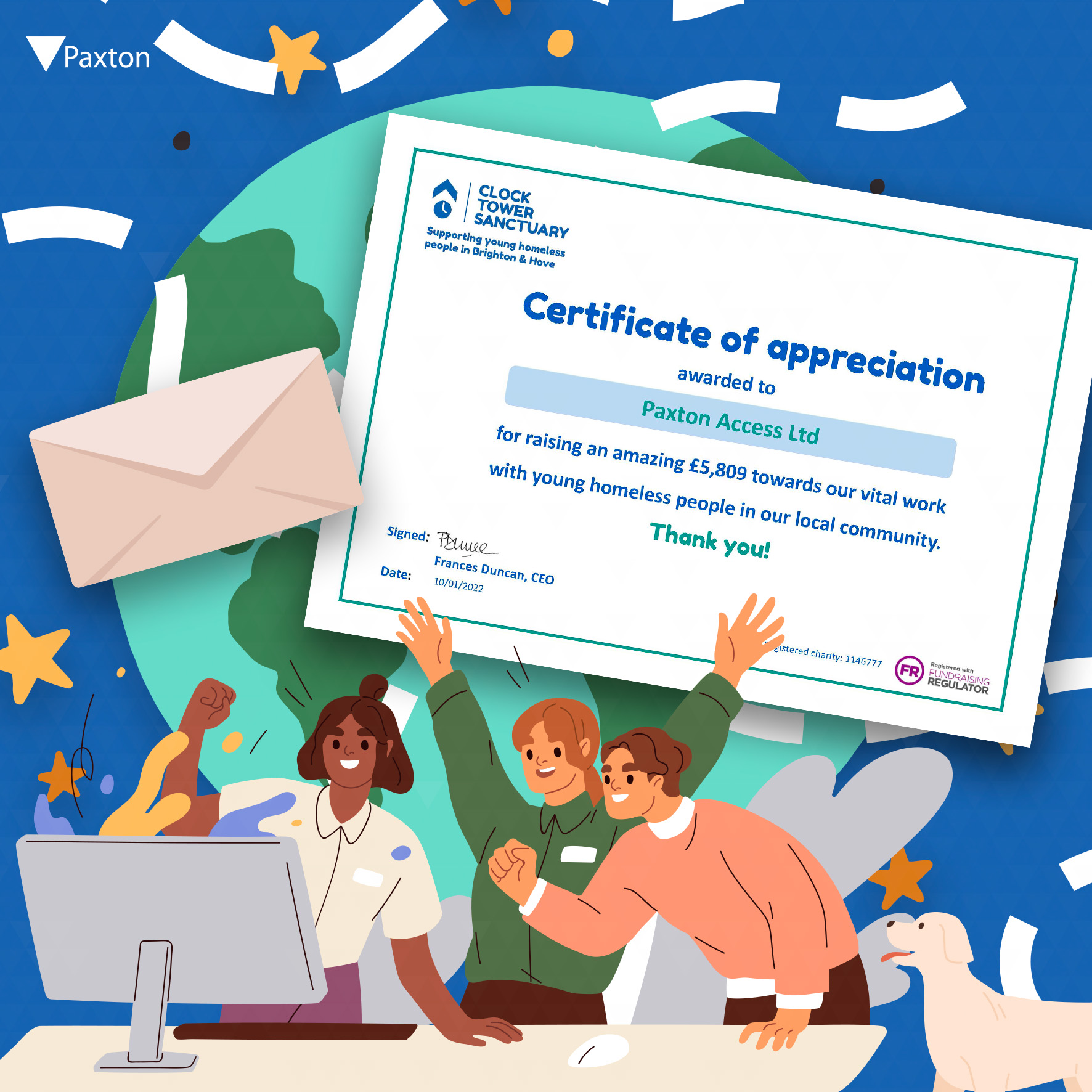 People working for Paxton the Brighton based tech company, have travelled 53,709 virtual miles, raising £5,809 for the Clock Tower Sanctuary, who support homeless 16–25-year-olds in Sussex.