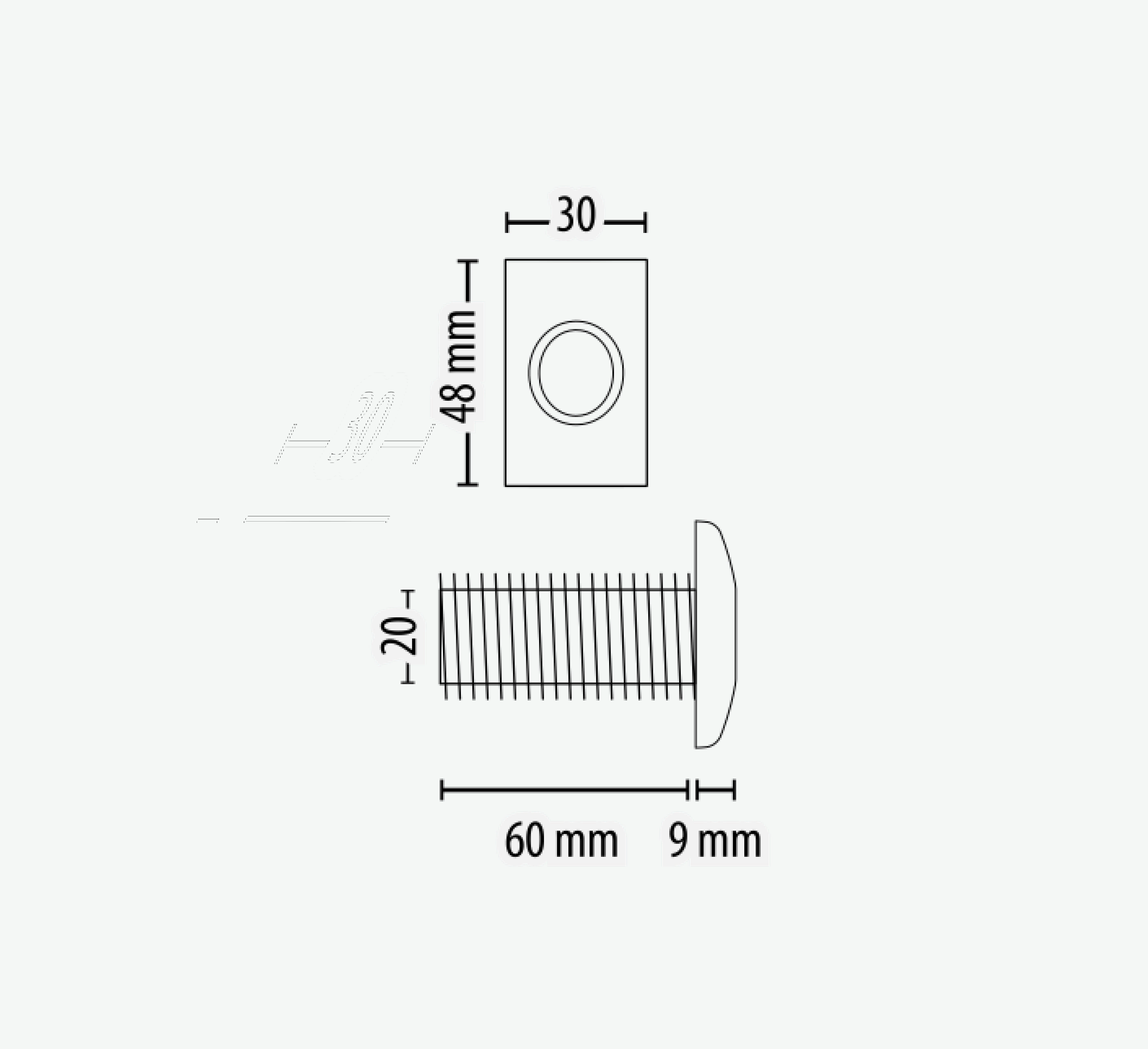 Installation – The reader is wired as shown on the control unit label. The reader itself is inserted into a 20mm diameter hole in the wall or door frame. The cap is then mounted as a visual marker for users. The reader should not be mounted into metal.