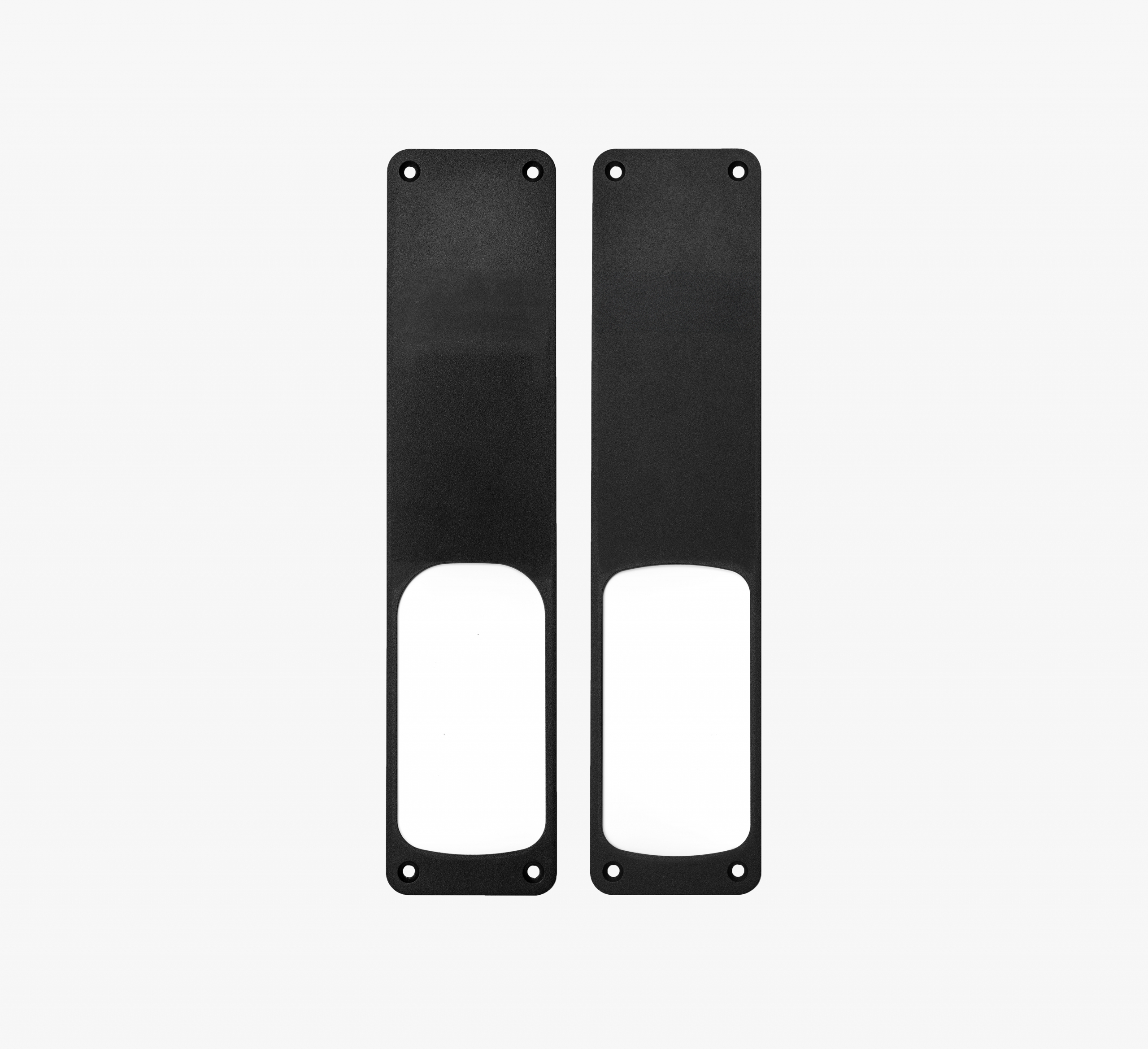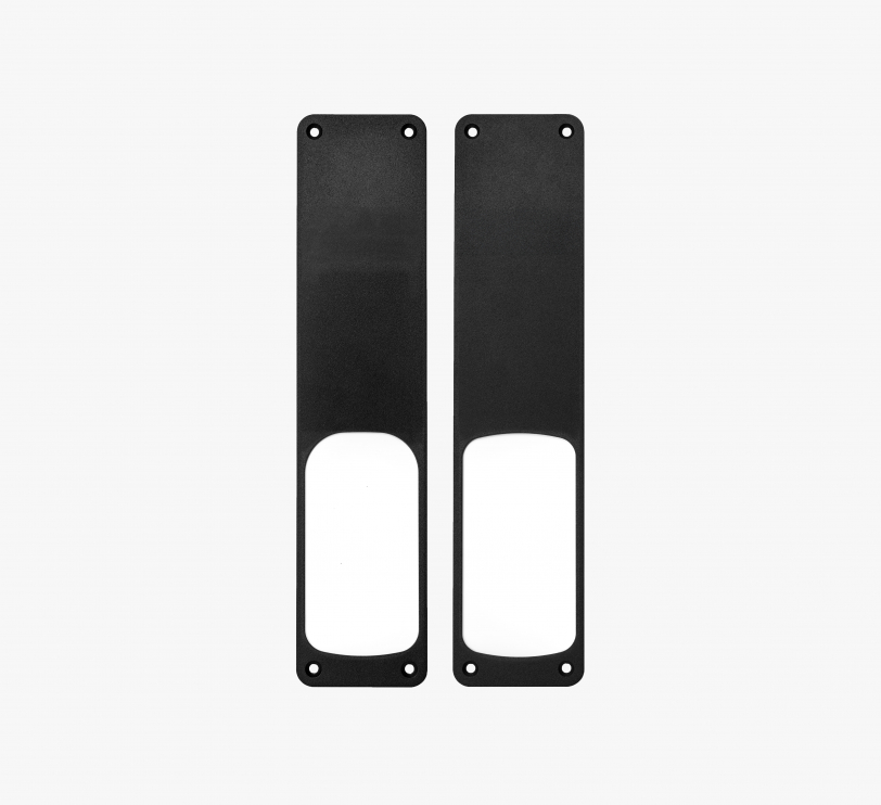 The PaxLock Pro täckplåtar gör att du kan installera PaxLock Pro på en dörr som tidigare haft ett handtag eller andra dörrbeslag, där borrhål eller märken är bredare än PaxLock Pro-enheten. Täckplåtarna döljer diskret alla kvarvarande hål eller märken, vilket gör att du sparar tid och pengar som skulle lagts ner på renovering.