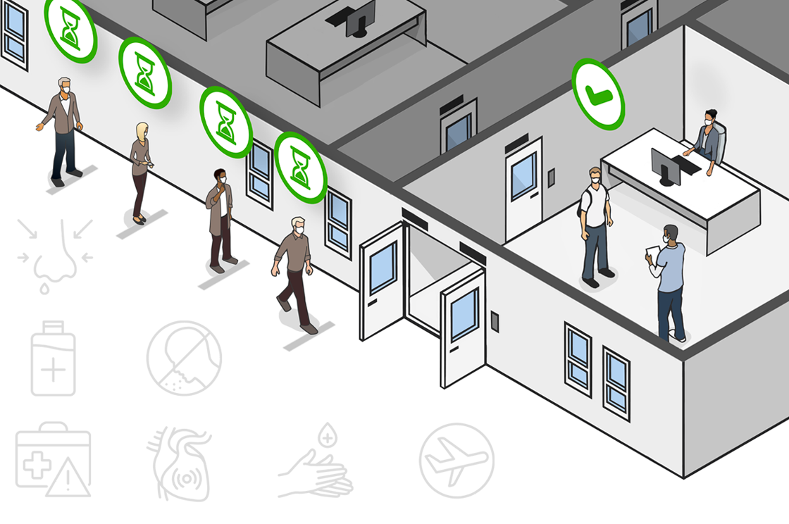 Hjälp dina kunder att skydda sin personal och besökare genom att övervaka och godkänna personer när de återvänder till jobbet. Skapa kontrollpunkter i en byggnad där användarna måste kontrolleras innan de får tillträde till andra områden. Detta hjälper dig att följa riktlinjer för hälsa och säkerhet och tillgodose besökares välbefinnande.
