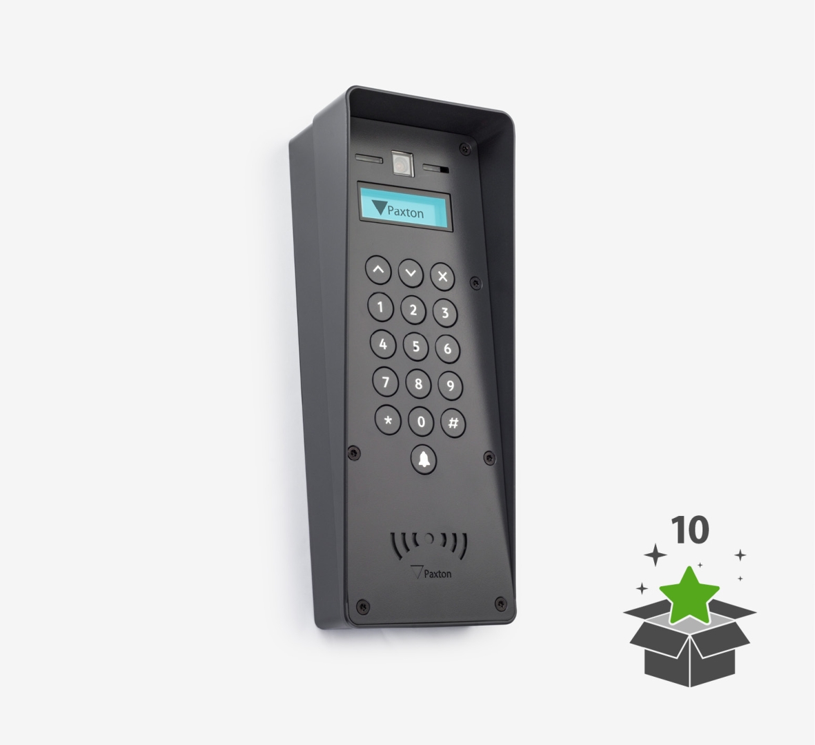 When connected to Net2 or Paxton10, access to the building can be gained by using a PIN, Code and/or proximity token (including MIFARE® and Paxton tokens). Paxton10 also offers free Bluetooth Smart Credentials for use with Entry panels. Entry v2.22 is required.